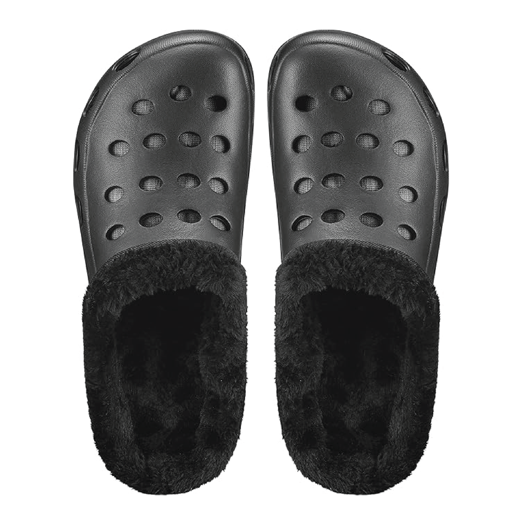 Step into comfort with these fur-lined slip-on clogs. Designed for ultimate warmth and easy wear, they feature a soft, plush interior that keeps your feet cosy during chilly days. The lightweight, durable construction offers all-day support, while the roomy fit ensures comfort for every foot. Perfect for indoor lounging or quick trips outside, these versatile clogs are your go-to for effortless style and comfort.